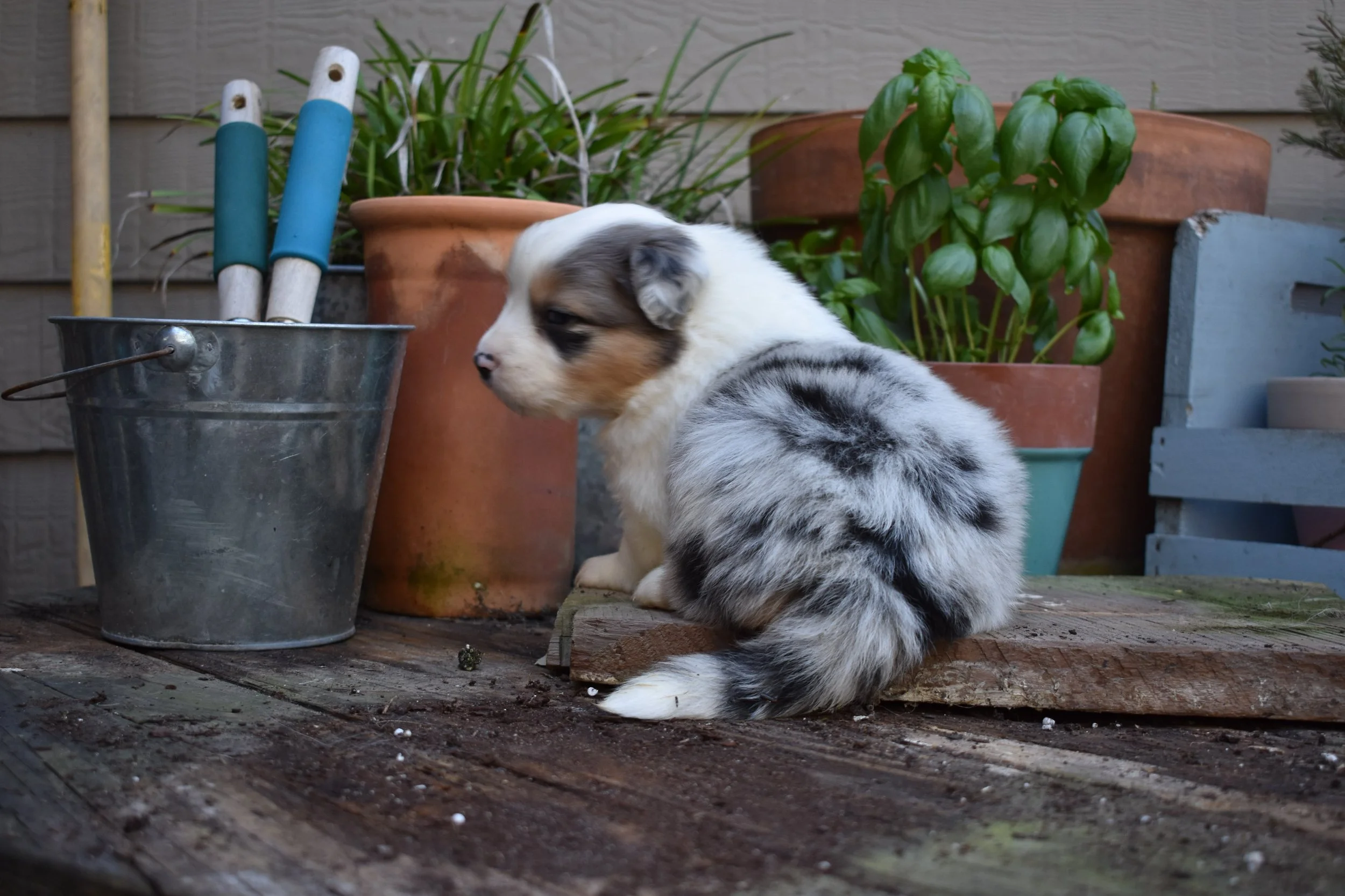 We are excited to finally share pictures of this beautiful litter! We have lots of color and flashy coats not to mention a whole new level of chunkiness! Both Layla and Sampson are on the larger end of the Aussie scale and their puppies certainly reflect it! Layla has a very calm disposition with a medium to low energy drive, while friendly she isn’t overly interested in strangers and prefers the company of our family and children. Sampson is similarly calm to border line lazy; you won’t meet a more friendly, easy going fella! Layla has past puppies working in agility, herding and as service dogs and while these puppies will gladly except a job to do, we expect a lot of easy going, biddable dispositions perfectly fit for the spoiled family dog life! This litter will be registered with the American Kennel Club (AKC) and are eligible to register with the Australian Shepherd Club of America (ASCA).